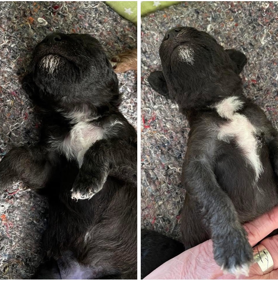 Perdita och Nana har nästan likdana vita tecken. Båda har vit getskägg. Perdita har vit vid klona på höger, Nana på vänster. Vita på bröstet på så har Perdita den att gå upp på halsen till vänster och Nana tvärt om.